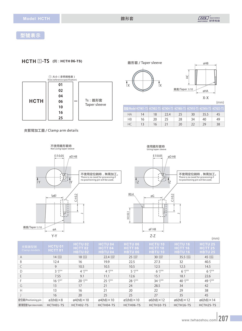 HCTH锥形套/夹紧臂
